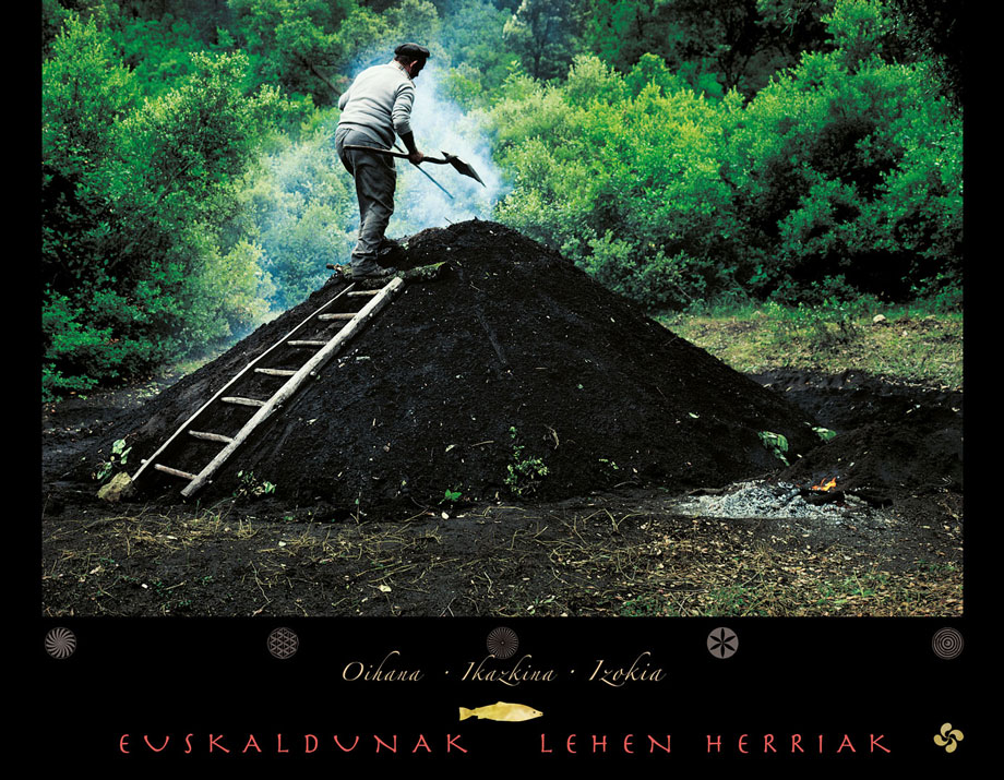 Carbonero de Eztuinaga, Anastasio Otxoa. La selva proporciona lo necesario para la supervivencia, materiales, combustible, comida. Durante miles de años hasta ahora ha pervivido esa herencia de los cazadores-recolectores, los pobladores indígenas de Homo sapiens de Europa. Los vascos y su lengua son el testigo vivo de un pasado que se remonta a 45.000 años sobre esta misma tierra.